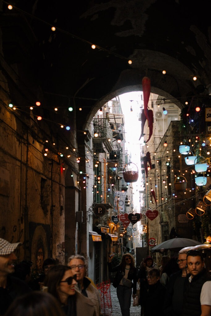 Via San Gregorio Armeno is something special, full of tiny handcrafted figurines that are part of the Neapolitan presepe tradition. Originally rooted in ancient terracotta offerings, they later evolved into detailed Nativity scenes that mix the sacred with everyday life, featuring locals, vendors, and even modern figures. It’s a unique tradition that keeps Naples’ culture alive all year round. On the same street you can take a sweet break at Sfogliate & Sfogliatelle, where they make authentic pastries that aren’t overly sweet. Nearby, there’s also a beautiful courtyard filled with wisteria and plants perfect for a little photo moment.