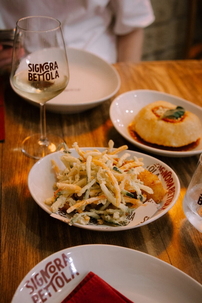 I want to highlight Signora Bettola in particular we loved both the food and the atmosphere. Everything we ordered was great: traditional pasta with potatoes, meatballs in sauce, fried vegetables, the tiramisu, even the house wine.